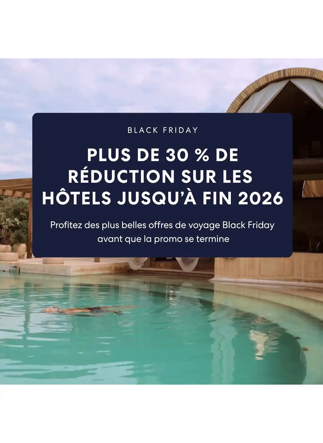 Profitez de tarifs inratables lors de notre plus grande promo Black Friday à ce jour, et proposez ces offres à un encore plus grand nombre de voyageurs grâce à nos ressources marketing gratuites.
