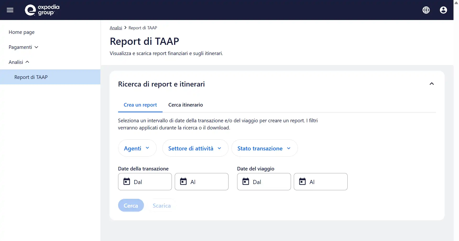 Crea report con nuovi filtri personalizzati: genera report in base alle date delle transazioni o dei viaggi e perfeziona i tuoi report in base ai parametri che hai scelto.