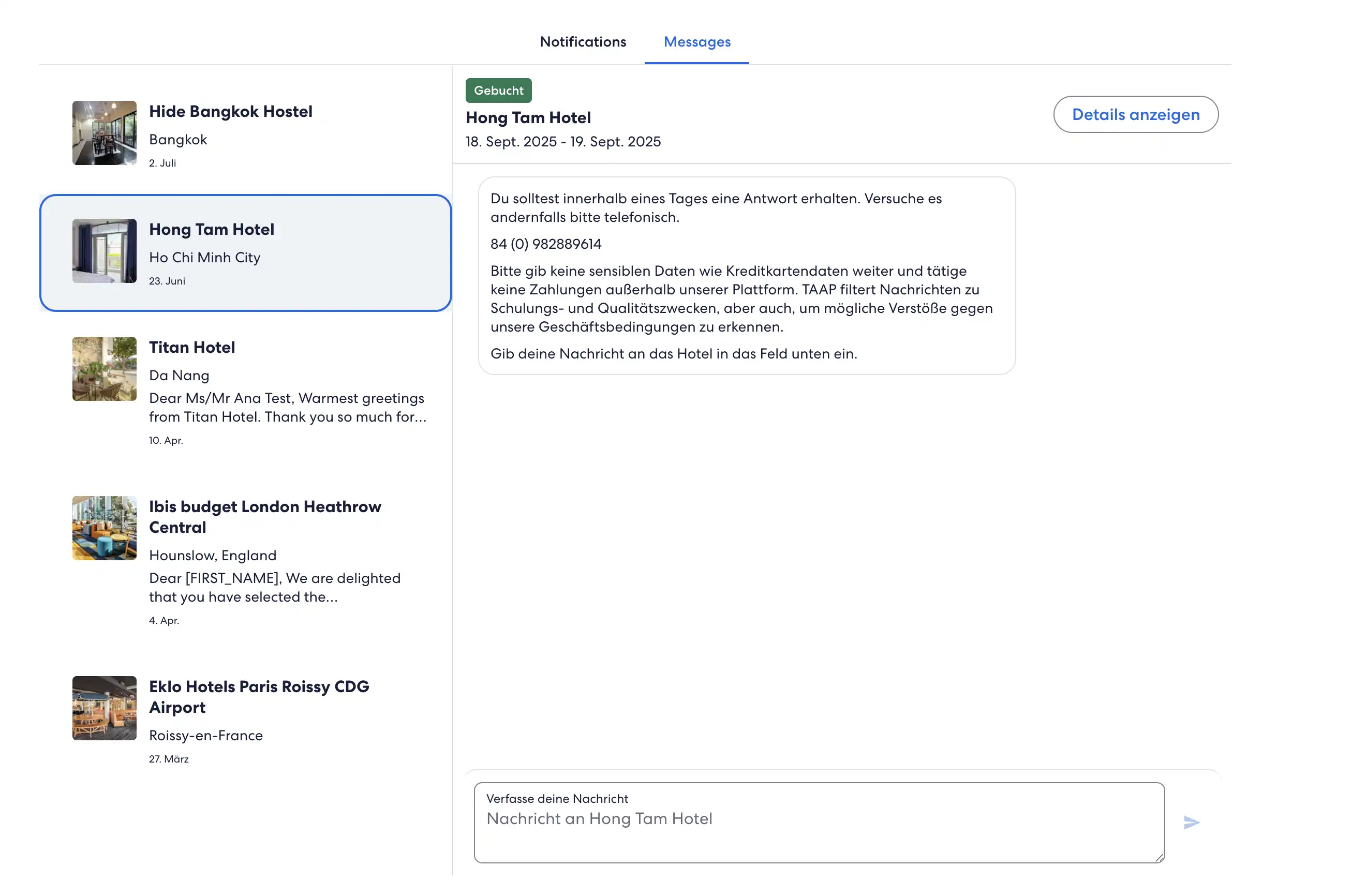 3. Senden Sie eine Nachricht an die Unterkunft