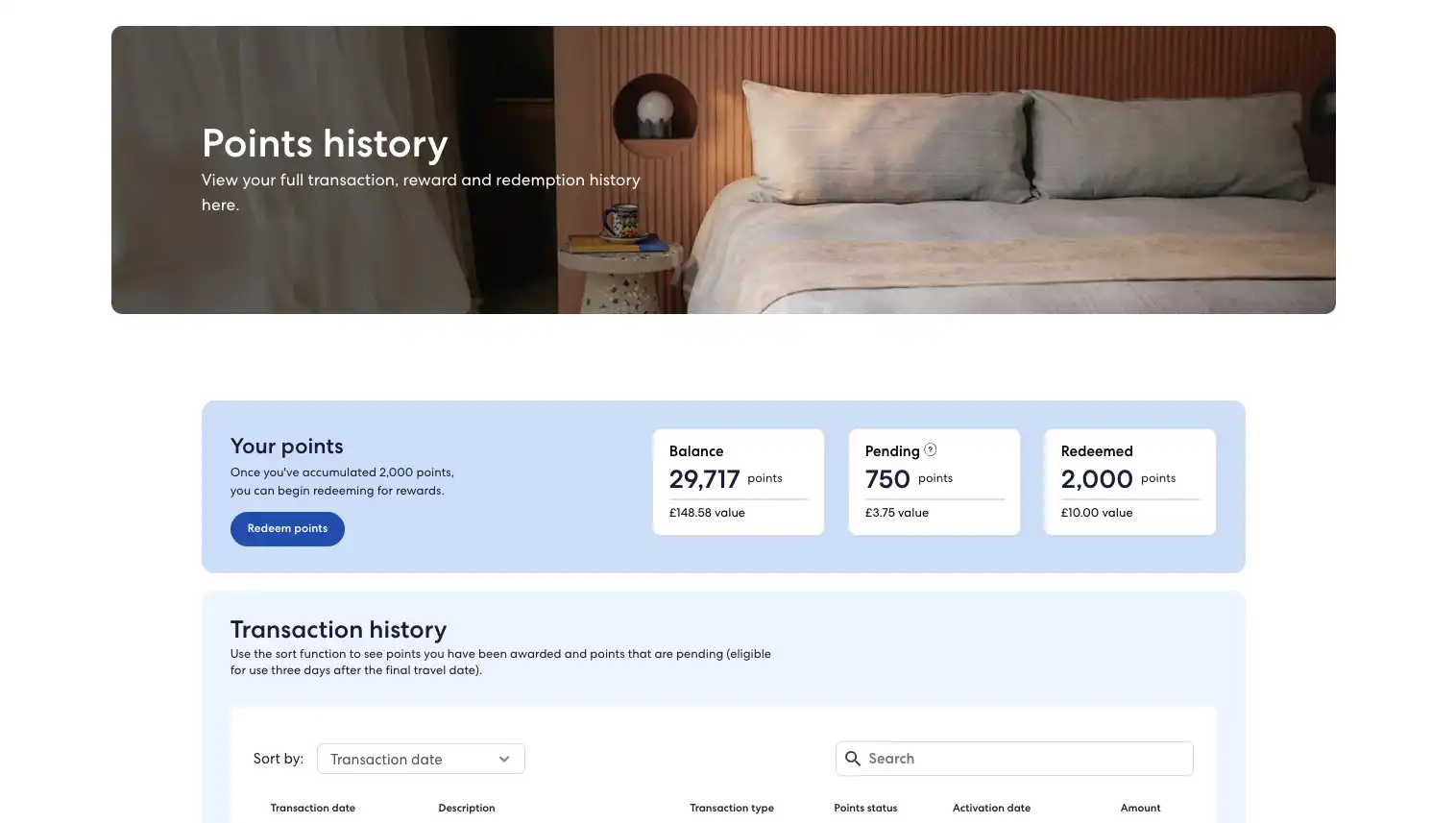 In the top navigation bar, select the Points history tab. In this page you can view how many reward points are available on your account.