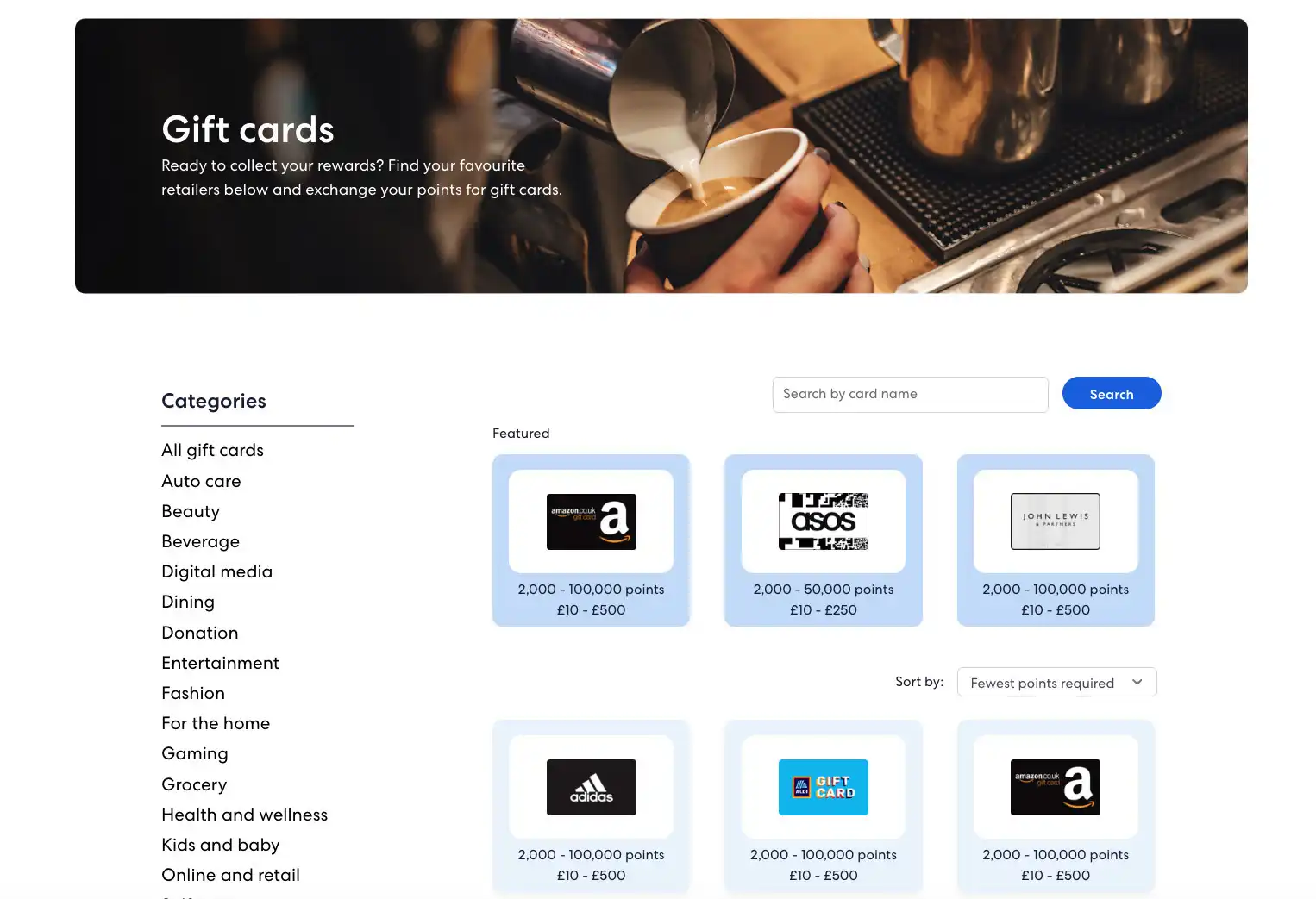 In the Expedia TAAP Rewards site, select Redeem points to browse the catalog. You can then select a gift card and denomination of your choice. Gift card value ranges will depend on the gift card you select. Please note that the selection of available retailers and gift card denominations will vary by country.