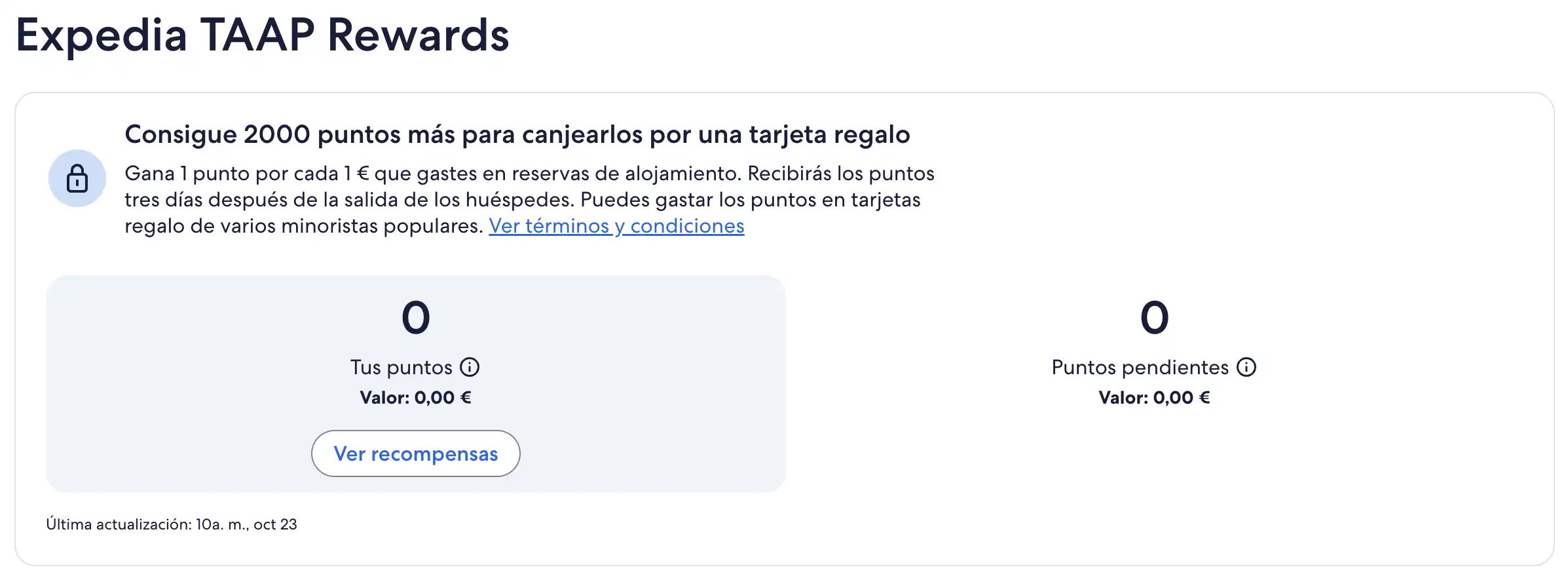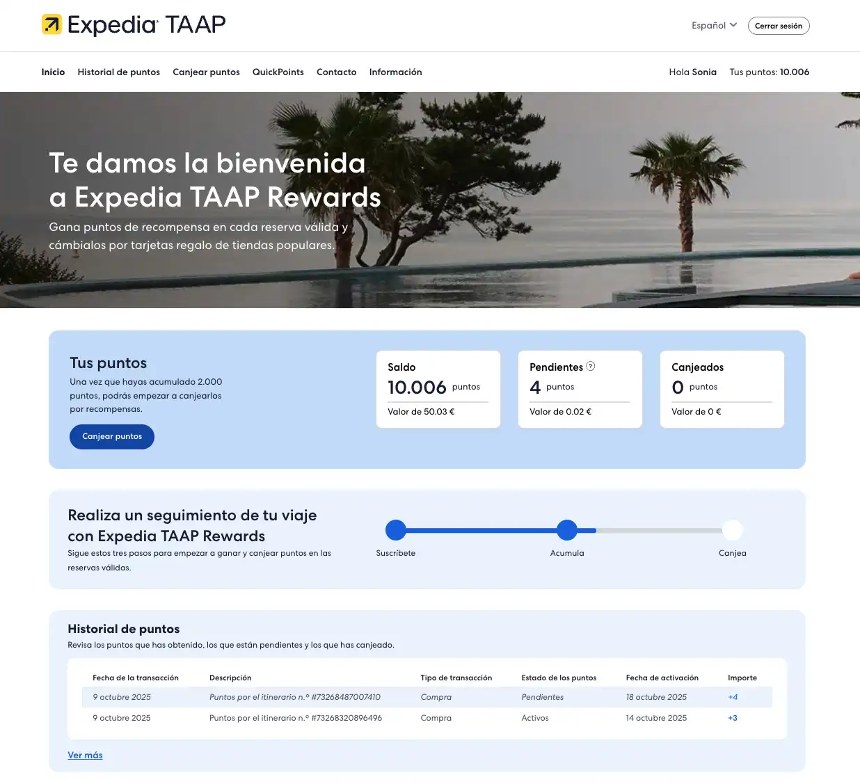 Y eso es todo: ya tienes todo listo para empezar a ganar puntos de recompensa por cada reserva válida en Expedia TAAP.