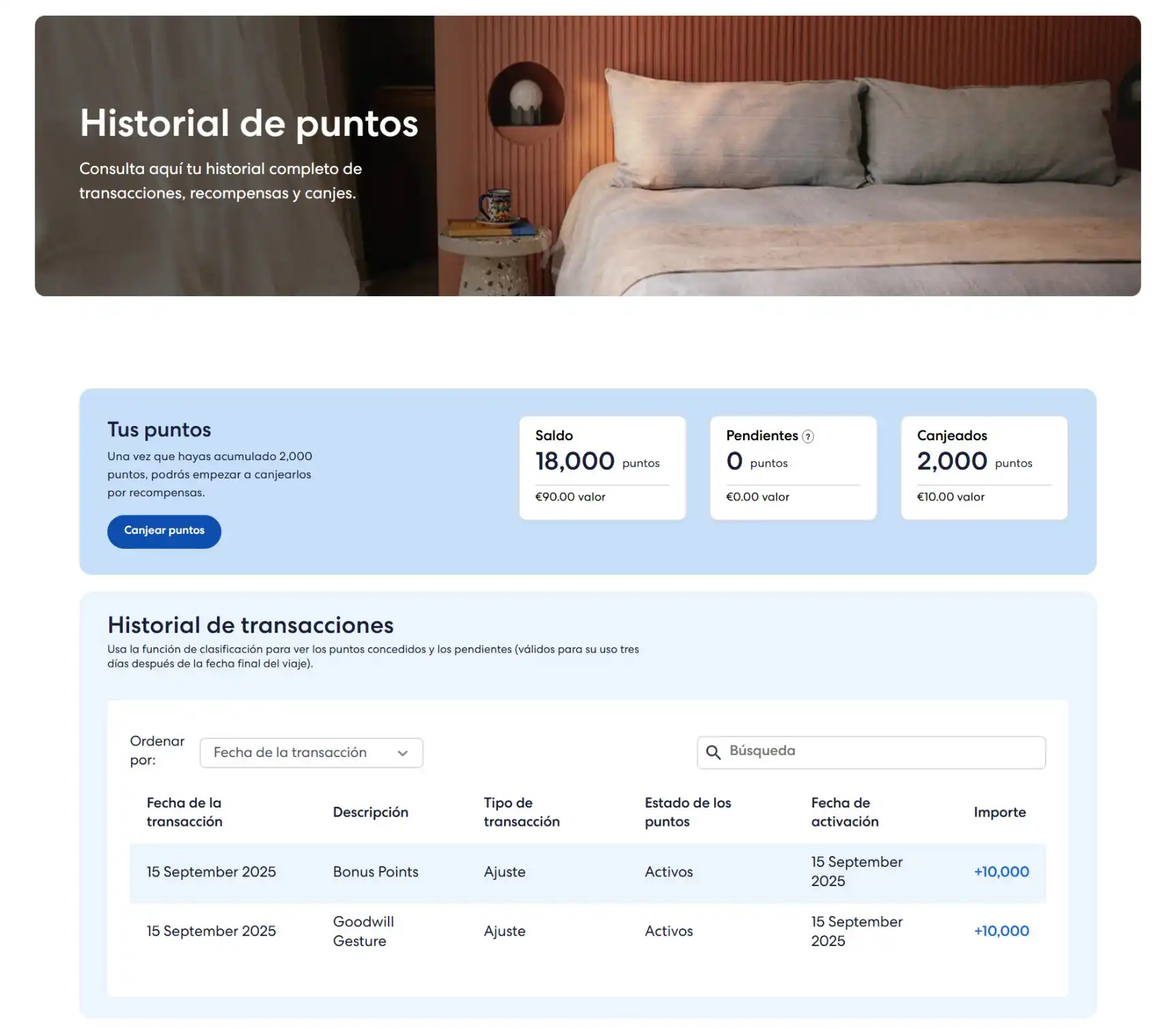 - Los puntos pasan a estado Activo y se añaden a tu cuenta de fidelización al menos una semana después de la fecha de salida del viajero.