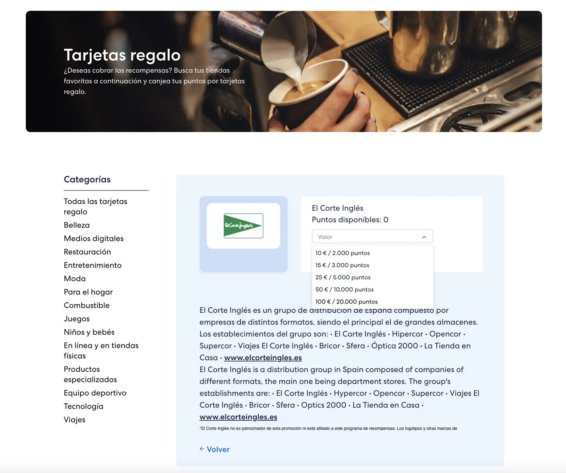 Una vez hecha tu selección, añade las tarjetas regalo elegidas a la cesta de la compra y completa el pago en el sitio web del programa de fidelización. Ten en cuenta que los canjes son definitivos y no se pueden cambiar ni reembolsar.