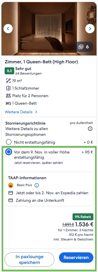 - Expedia Collect-Raten (Expedia erhält die Zahlung, nicht die Unterkunft)