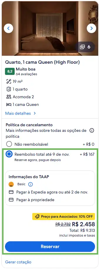 - Tarifas reembolsáveis ou que não exigem depósito